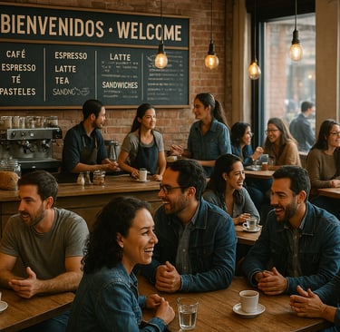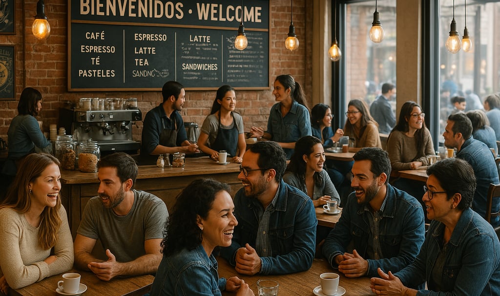Imagina entrar a un café en Colombia donde la dueña te saluda en inglés y luego, sin problemas, cambia al español para charlar con la gente local.